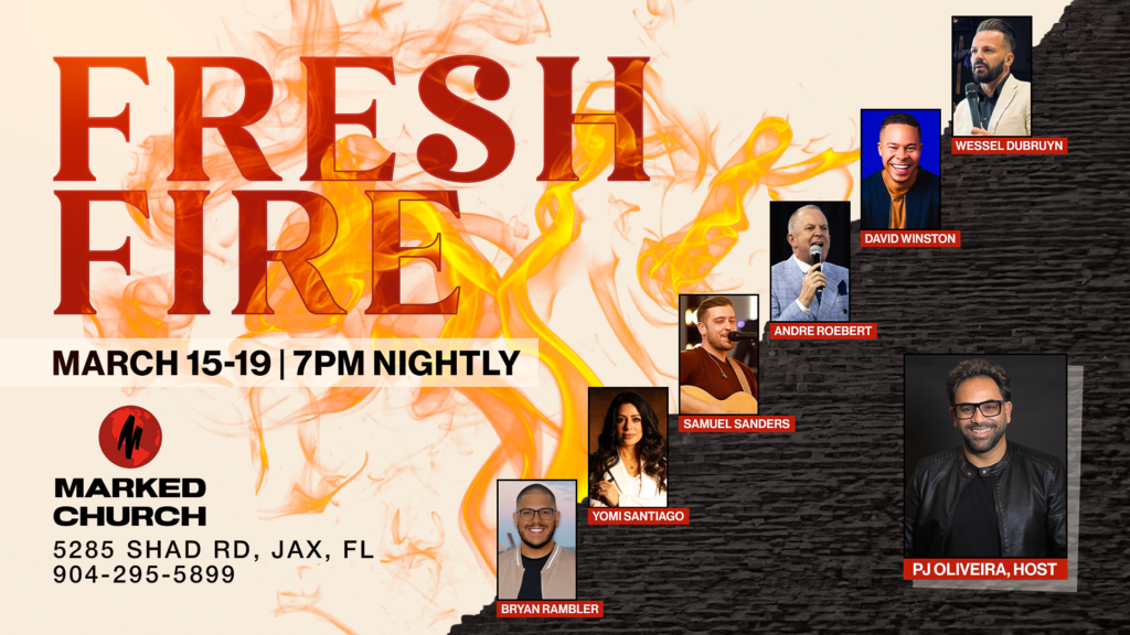 Marked Church invites you to experience Fresh Fire, a powerful week of worship, preaching, and spiritual renewal designed to ignite hearts and strengthen faith. Join us March 15–19 at 7:00 PM nightly for dynamic services featuring an anointed lineup of speakers and worship leaders, including Wessel Dubruyn, David Winston, Andre Roebert, Samuel Sanders, Yomi Santiago, […]